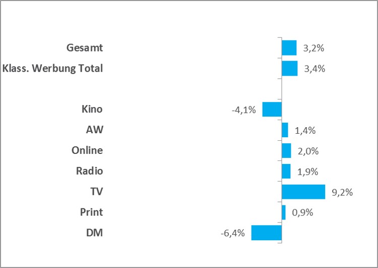 Lt. Focus belaufen sich die Ausgaben für klassische Werbung von Jänner bis August auf 2,2 Milliarden Euro. Das ist ein Anstieg von insgesamt 3,4% versus dem Vergleichszeitraum 2015.